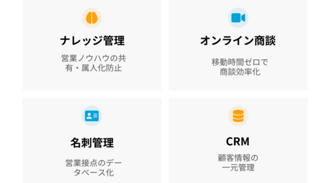 顧客との接点やコミュニケーション手段を提供するツール群です。オンライン商談システム(Web会議ツール)や名刺管理、営業電話支援システム(インサイドセールス向け架電ツール)など、顧客とのやり取りを円滑にするためのサービスが含まれます。