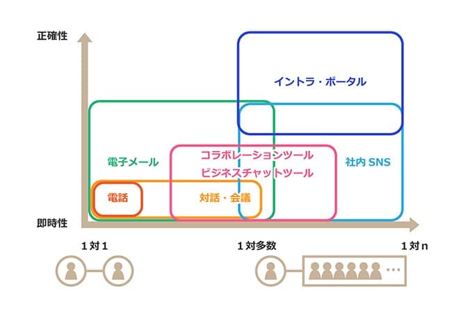 人間のコミュニケーションの手段は、共通の言語による対面コミュニケーションに始まり、やがて文字が発明され、紙と印刷、電話回線、インターネットを通じた通信へと進化してきました。現在、私たちが利用できるコミュニケーション手段と、それらを通じてコミュニケーションできる相手は増え続けています。だからこそ、コミュニケーション能力のひとつとして「適切なコミュニケーションツールとチャネルを選択できる」力の重要性もますます高まっているのです。