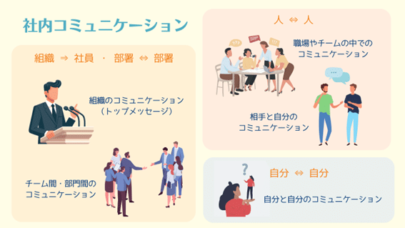社内コミュニケーションが活性化することで、さまざまなメリットが得られることがわかりました。ここからは社内コミュニケーションを解決する一般的なアプローチについて紹介します。