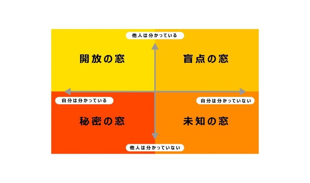 その他、リフレクションに役立つフレームワークとしてジョハリの窓が知られています。ジョハリの窓は1955年にルフトとインガムという心理学者が提唱した、自己認識の4つの領域モデルです。自分も他人も知る「開放の窓」、自分は知らないが他人は知っている「盲点の窓」、自分だけが知り他人は知らない「秘密の窓」、誰も知らない「未知の窓」の4象限に分かれ、自己理解を深めるためにフィードバックと自己開示の重要性を教えてくれます。