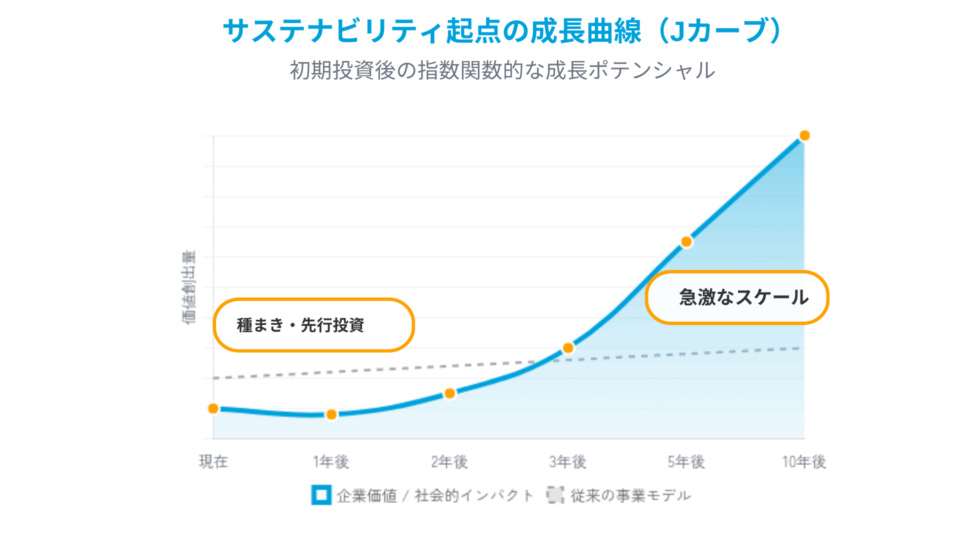 以上のように、サステナビリティ起点の事業にはスケールメリット(市場拡大)とリスク低減(持続可能な基盤づくり)という二重のメリットがあります。社会課題をビジネスチャンスと捉えて挑戦することは、企業にとって長期的な成長戦略そのものなのです。