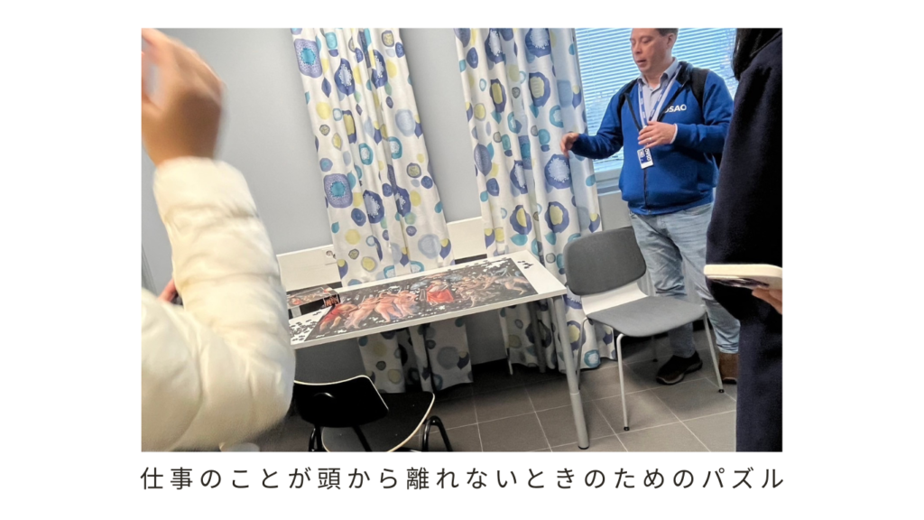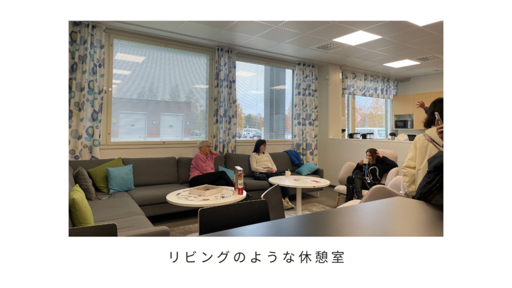 この休憩室からわかるようにフィンランドでは「社会的な肩書を外し、その人がその人でいられること」がとても重要なものとされています。