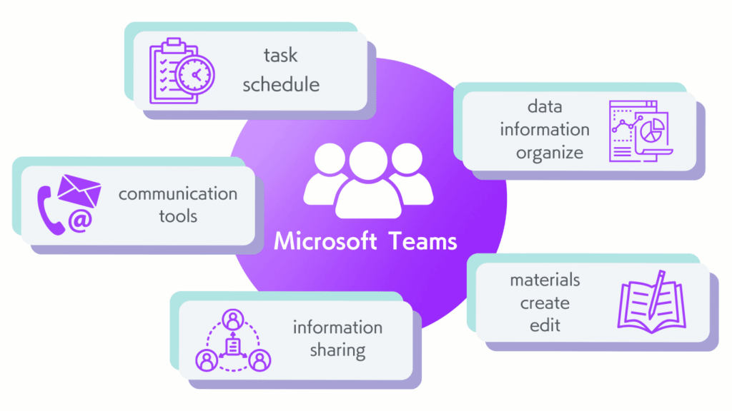 Microsoft Teams(マイクロソフト・チームズ)は、ビジネスにおけるコミュニケーションを円滑にするためのコラボレーションツールです。チャット機能によるテキストコミュニケーション、通話やビデオ会議機能によるリアルタイムコミュニケーション、そしてファイル共有機能による情報共有を一つのプラットフォーム上で実現します。
