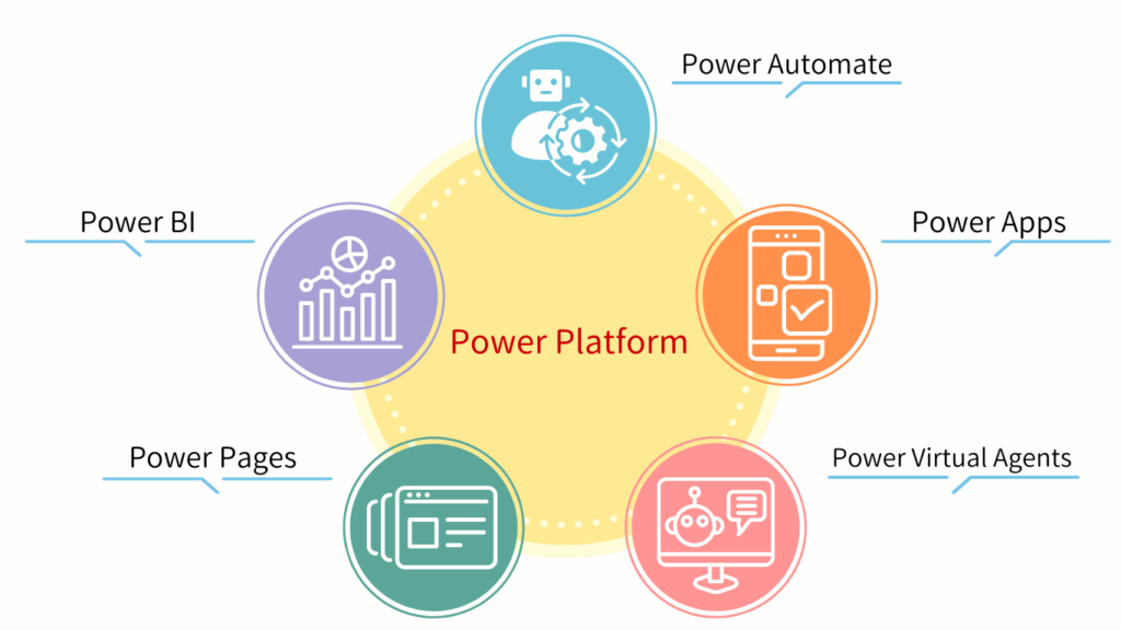 Power Platformには、Power Apps、Power BI、Power Automate、Power Virtual Agents、Power Pagesなど様々なツールが含まれており、ビジネスの効率化やデータの可視化に役立ちます 。ローコード開発であるため企業はアプリ構築を迅速に行うことができ、業務プロセスの改善につながるでしょう。