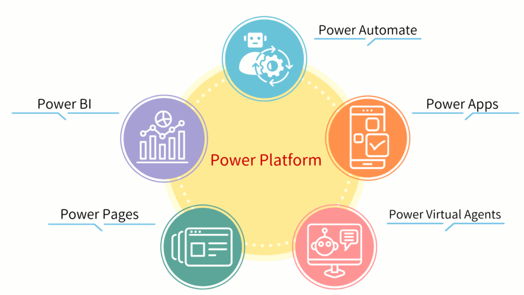 Power Platformは、Microsoftが提供する4つの主要なツールで構成されています。それぞれのツールは異なる目的に特化しており、業務の効率化や課題解決を支援します。