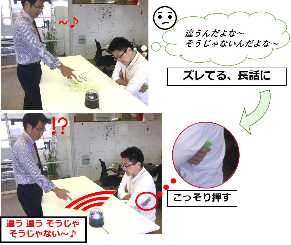 Twitterで見かけたある方のアイデアを「これ欲しい!」と社内で大盛り上がりし、実際に作ってしまいました!焦点のずれた指摘や長話など、「違うんだよなあ」と思いつつも言えない瞬間にはこっそりボタンを押しましょう。鈴木雅之の名曲『違う、そうじゃない』が流れ出しミラーボールが回り始めます。