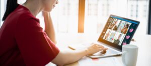 Businesswoman and Business team in video conference for protection covid-19.woman watching laptop webinar video course at home office.Webinar,social distancing,e learning and seminar online Concept.