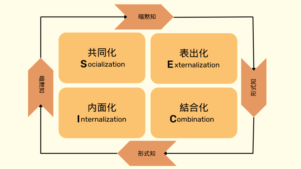 詳しくは、野中郁次郎氏の著書『知識創造企業東洋経済新報社(1996/3/1) 』をご参照ください。