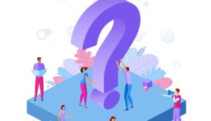 Trendy flat illustration. Frequently asked questions concept. Question mark. Office people. Template for your design works. Vector graphics.