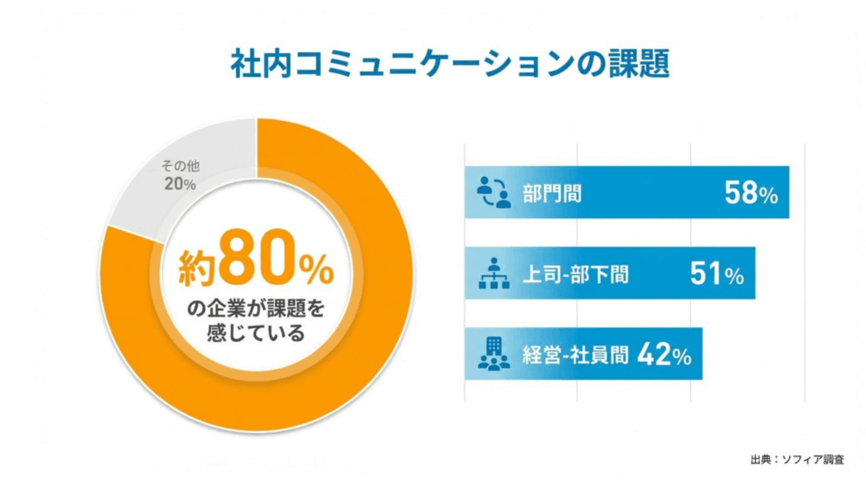 あなたの職場では、部門間や上司・部下間での情報伝達に課題を感じていませんか?テレワークの普及や組織の複雑化に伴い、社内コミュニケーションの活性化は大企業にとって喫緊の課題となっています。