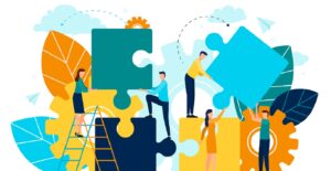 People Working Together, Making Up Puzzle Pieces