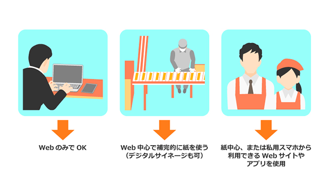 Web中心で、補完的に紙を使うとよいでしょう。