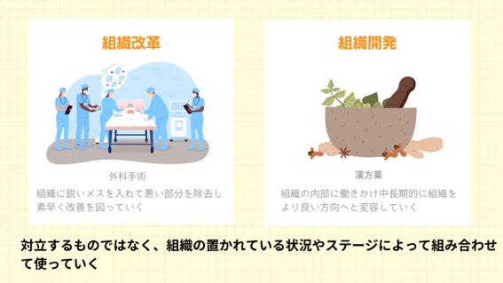 前述したように、組織改革は緊急性が高く、課題の重要性や正当性が高いものに対して行われます。