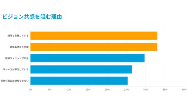 換言すれば、ビジョンの内容が現場とかけ離れていたり、説明不足で腹落ちしていなかったりすることが、社員の共感を妨げているのです。