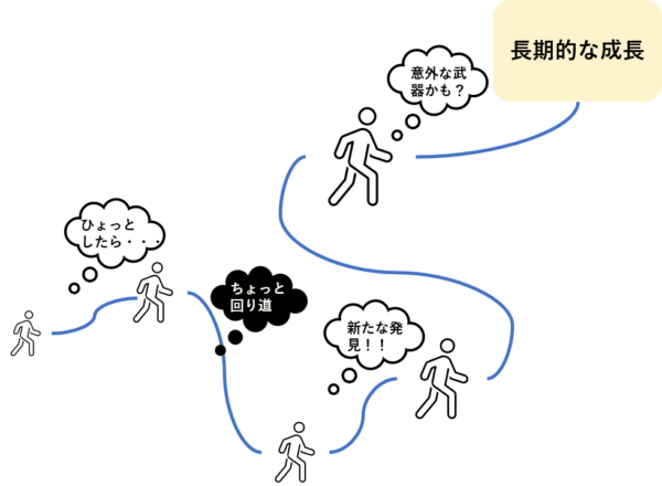 この先、順調に前進するときもあれば、寄り道したり、来た道を戻ったり、時にはどこかに落っこちて上司や同僚に引き上げてもらったり、そんなことを繰り返していくのかもしれない。だけど、それでいいのだ。そんな風に非線形であることこそが、成長のプロセスにおいて最も大切なことであり面白いところでもあるのだから。