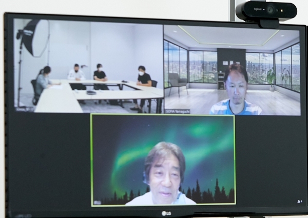 前山さん(画面下)、山口(画面右上)はオンラインでインタビューに参加しました