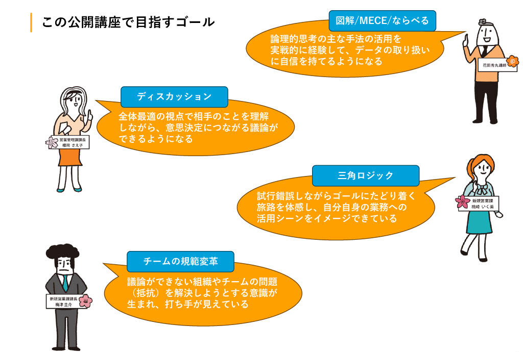 ・会議の「準備」⇒議論の「実践」⇒「振り返り」を繰り返しながら、ロジカル・シンキングを体得できます