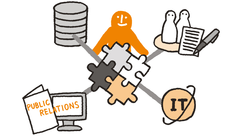 経営課題やありたい姿に応じて、社内コミュニケーション全体を見据えながら、各メディアとの使い分けや連携も含めてWeb社内報の要件定義や活用施策をご提案。その上で、経営企画や広報などの主管部門と、IT部門や外部のシステムベンダー、寄稿者となる各部門の編集員など、関係者それぞれのハブとなってプロジェクトを推進します。すでに社内で発信されているコンテンツを見直しや整理、統廃合や、新規コンテンツの企画提案や、運用体制構築の支援、ガイドライン・マニュアル類の整備なども行っています。